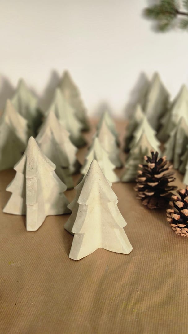 Betonowe choinki to minimalistyczne, a zarazem wyjątkowo stylowe dekoracje, które wprowadzają do wnętrza świąteczny klimat w nowoczesnym wydaniu. Wykonane ręcznie z betonu dekoracyjnego, zachwycają prostotą formy i naturalną fakturą wraz z widoczną strukturą pęcherzyków.