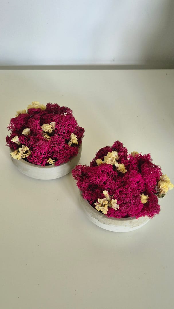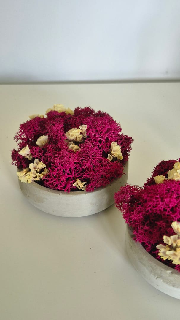 - Minimalistyczna forma: Surowy beton, z którego wykonana jest doniczka, w połączeniu z naturalną zielenią chrobotka tworzy harmonijną całość, idealnie pasującą do nowoczesnych, skandynawskich i loftowych wnętrz. Minimalistyczny design podkreśla piękno zarówno betonu, jak i chrobotka, tworząc elegancki i stylowy dodatek do każdego pomieszczenia.