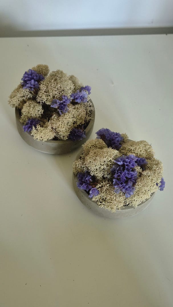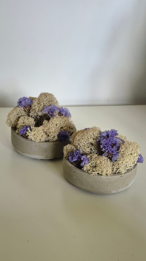 BETOmisa S – betonowa doniczka z chrobotkiem i kwiatkami