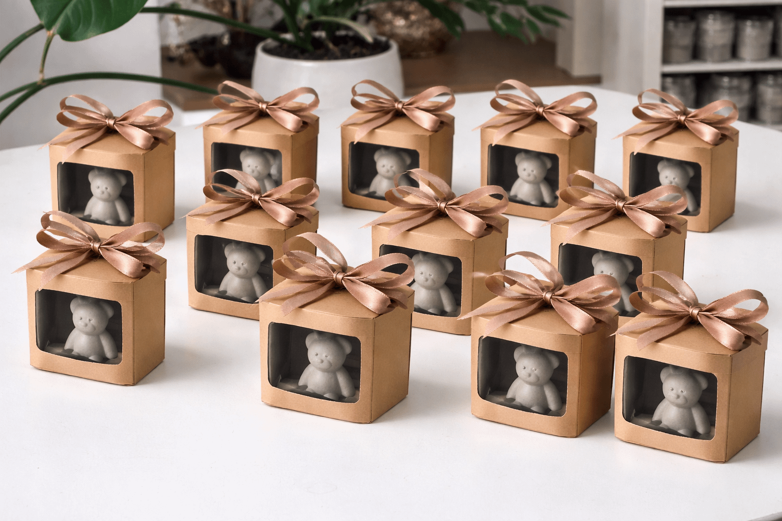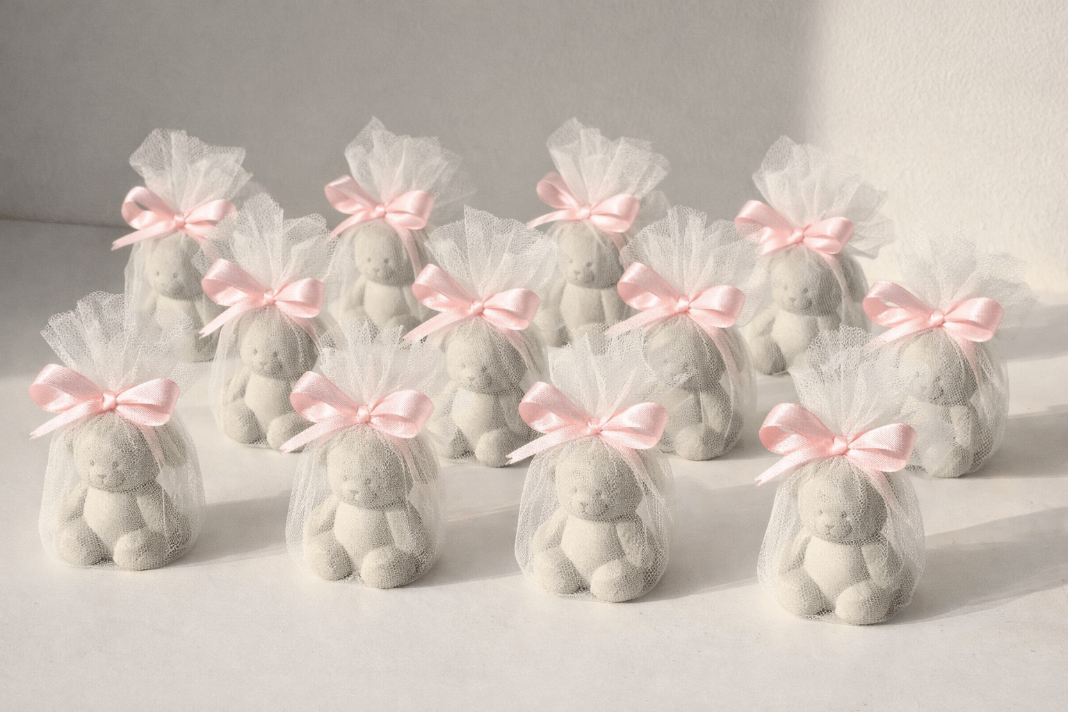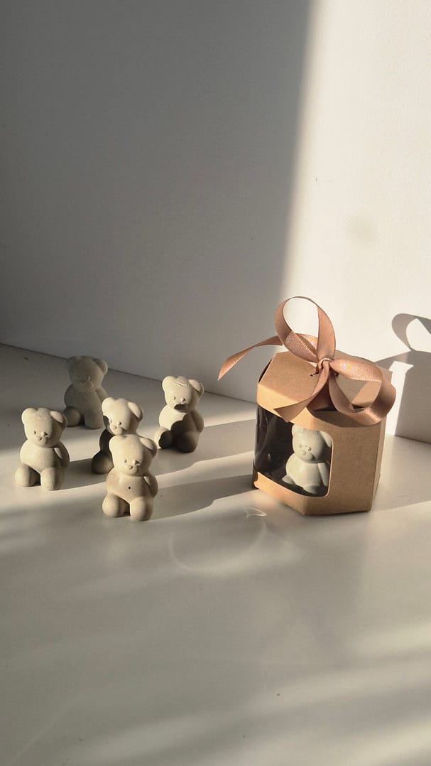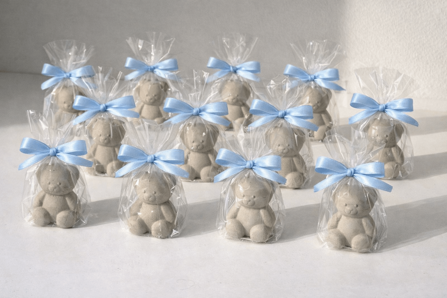 Mały miś to doskonały wybór na chrzciny, baby shower jako podziękowanie dla gości. Subtelny, minimalistyczny i uniwersalny – pięknie prezentuje się na stole lub w zestawie prezentowym.