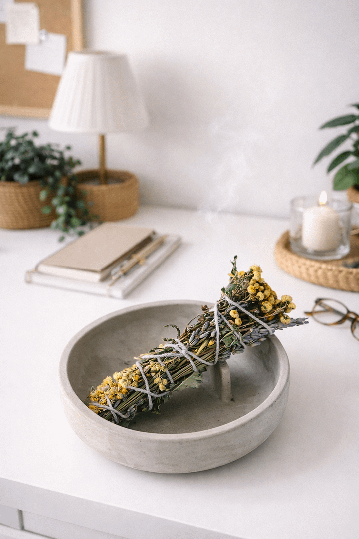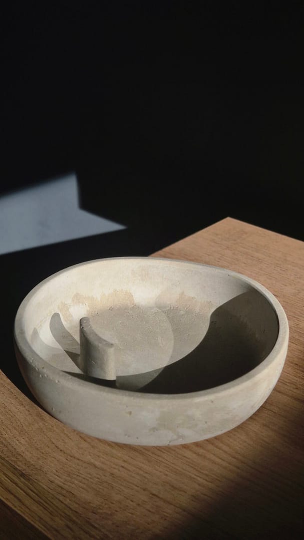 Po zdmuchnięciu płomienia, ułóż tlącą się wiązkę na betonowej paterze. To ognioodporna, stabilna baza, która wyłapie opadający popiół i dopełni rytuału swoją prostotą.
