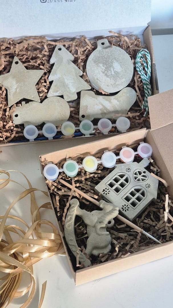 Do wyboru trzy kreatywne boxy z zawieszkami  lub figurkami do własnoręcznego malowania. W zestawie znajdziesz zestaw farb oraz sznurek lub wstążkę: