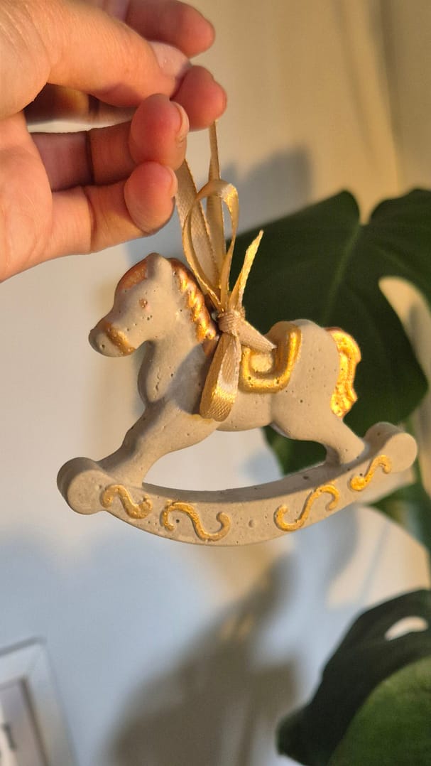 Każda zawieszka ozdobiona jest elegancką wstążką w kolorze szampańskim, jednak na życzenie można wybrać inny kolor, dopasowany do stylu Twojej choinki czy aranżacji.