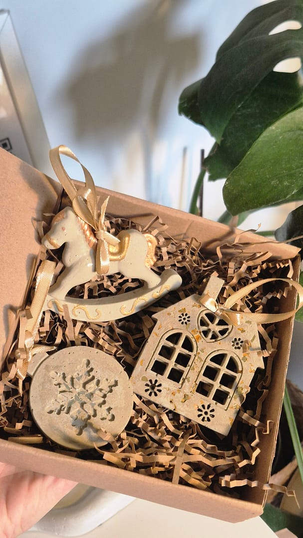 Zestaw betonowych zawieszek Betoninki to propozycja dla osób, które cenią minimalizm, naturalne materiały i unikalny charakter świątecznych dekoracji.